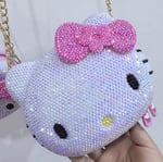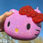 This dazzling piece is fully covered in shimmering rhinestones that catch the light from every angle, giving you that luxury, high-glam glow wherever you go. Designed in the signature Hello Kitty silhouette, it features a bold crystal bow that adds the perfect pop of personality—cute, confident, and unforgettable.